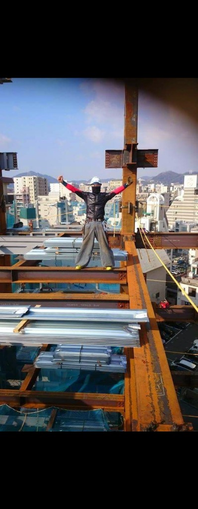 こう見えて鉄骨の上ではまともに立てないぐらいグラグラ揺れとります(笑)引き続き #木山実業では #磐田市で #溶接工や #鉄骨鳶など #鉄骨工事に携わる #職人募集中です。
