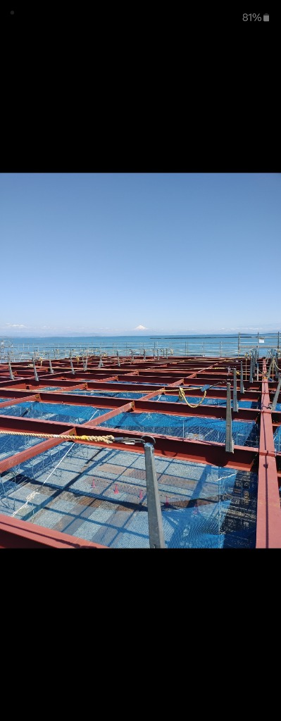 富士山と海と鉄骨建て方、ダメ直し、鍛冶工事作業!