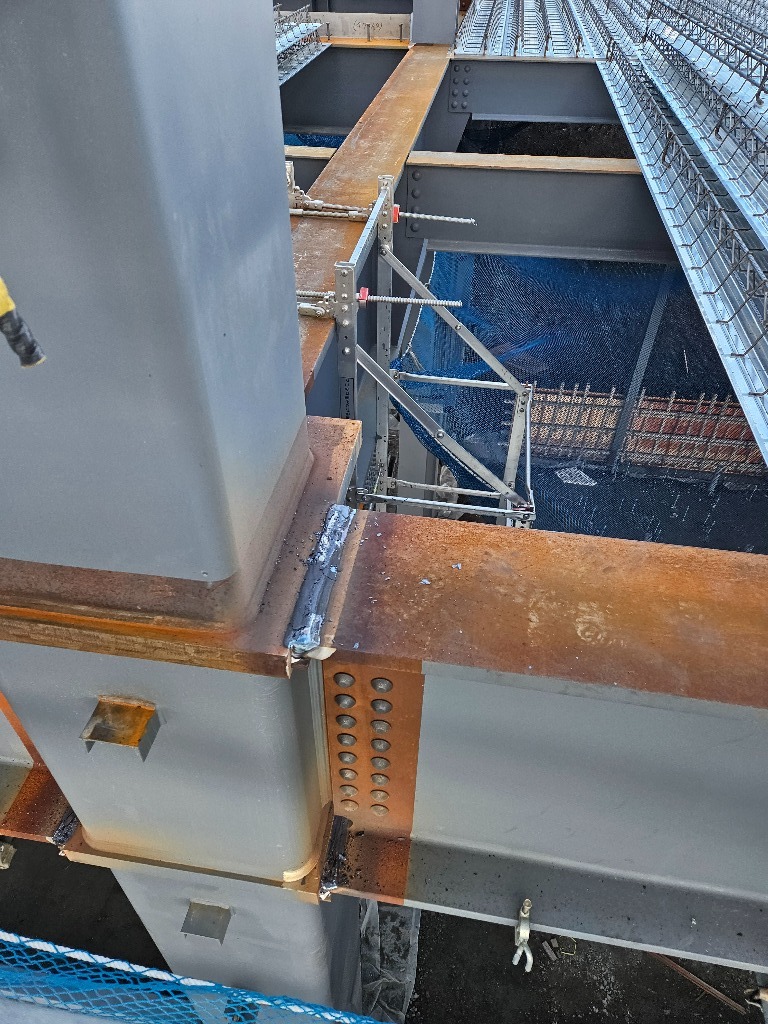 ウエルサイト工法で現場でまず柱を立てて梁を繋ぎボルトを入れ立て起こし(垂直にして)をして柱と梁を溶接し一体化する工法です。🫡引き続き #木山実業では #磐田市で #溶接工や #鉄骨鳶など #鉄骨工事に携わる #職人募集中です。